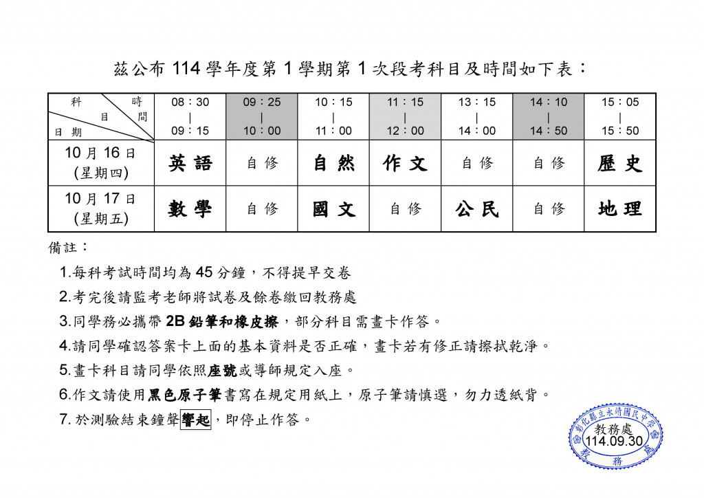公告「115學年度國中教育會考及全國高級中等學校與專科學校五年...